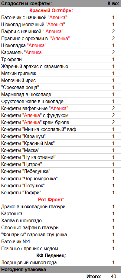 Кол-во сладостей: 40 шт.