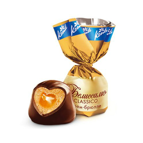 Конфеты Белиссимо классико крем-брюле производства компании "Конти" можно купить оптом с доставкой по Москве, Подмосковью и ЦФО. Низкая цена обусловлена отсутствием посредников при наличии прямого договора с производителем. Все актуальные сертификаты в наличии. Минимальный заказ: 1 коробка