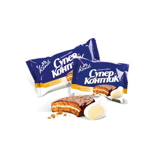 Печенье-сэндвич "Супер Контик" 50 грамм производства компании "Конти" можно купить оптом с доставкой по Москве, Подмосковью и ЦФО. Низкая цена обусловлена отсутствием посредников при наличии прямого договора с производителем. Все актуальные сертификаты в наличии. Минимальный заказ: 1 коробка