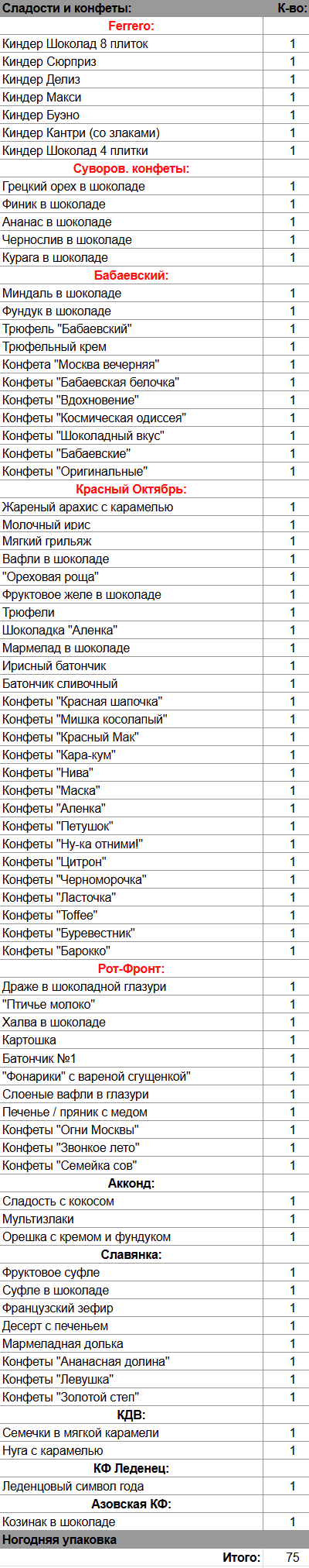 Кол-во сладостей: 75 шт.